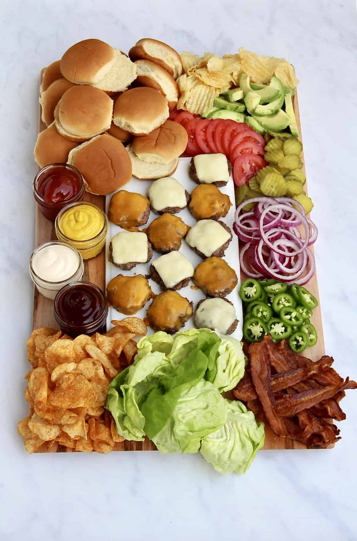 Verschiedene Gemüsesorten, um Ihren Burger zu verfeinern, darunter: