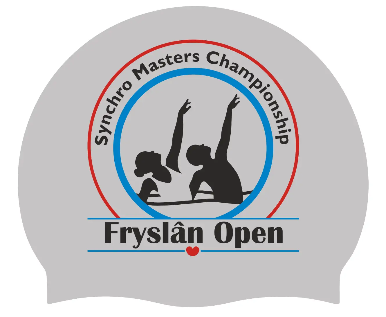 Bonnet de bain Fryslân Open Synchro Masters – 1 face avec le logo du championnat et l’autre face avec texte. Disponible en trois couleurs :